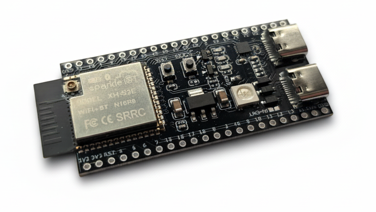 Als Herzstück verwende ich ein ESP32-S3 DevKitC-1 (N16R8). Der ESP32-S3 bringt praktischerweise: